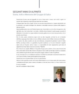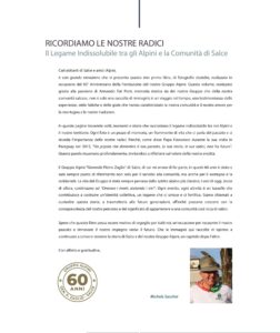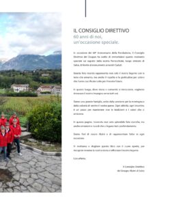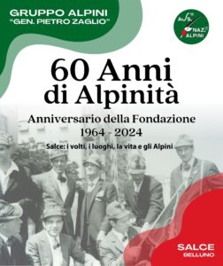 In questa galleria trovate tutte le pagine del libro “60 Anni di Alpinità”, scritto da Michele Sacchet (socio del Gruppo) e stampato in occasione del 60° Anniversario della fondazione del Gruppo Alpini “Generale Pietro Zaglio” di Salce (BL), ordinate in sequenza numerica.